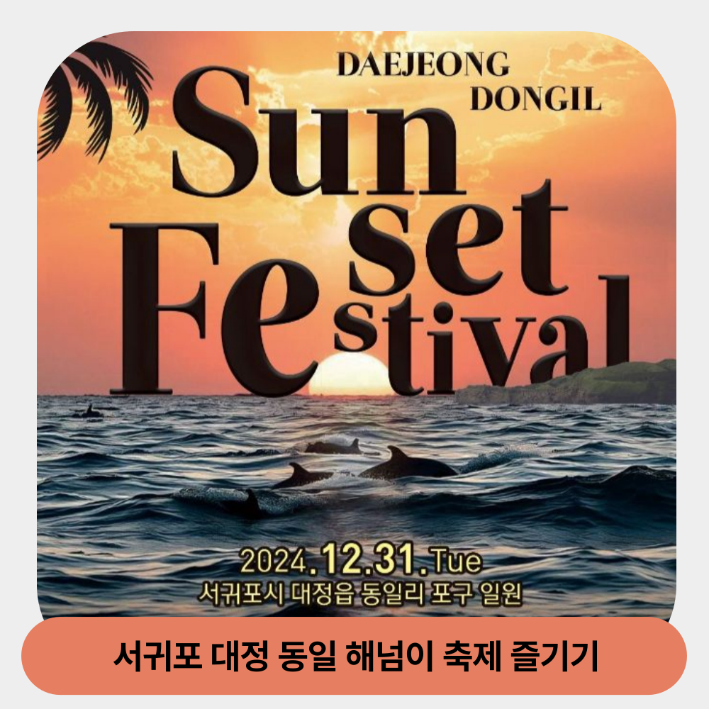 서귀포시 대정 동일 해넘이 축제 개최 일정 자세한 안내는 아래 서귀포시 홈페이지 참고 하세요. 🌟
